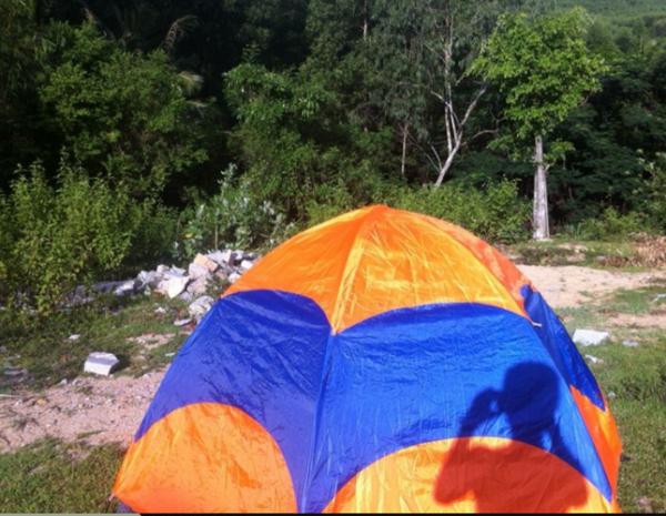 Có những khi trời tối không ngủ nhờ được nhà ai, anh Hoan đã phải ngủ luôn tại lều đặt ngoài trời.
