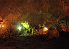 9h30: Quý khách lên xe ô tô tiếp tục hành trình đến với khu danh thắng Ngũ Động Thi Sơn nằm trong lòng núi Cấm. Quý khách tham quan di tích lịch sử đền Trúc – nơi thờ anh hùng dân tộc Lý Thường Kiệt. Chiêm ngưỡng vẻ đẹp độc đáo của thạch nhũ với nhiều hình thù khác nhau, đặc biệt trên vách các hang động đã được thiên nhiên kỳ thú vẽ nên nhiều cảnh tượng đẹp về cuộc sống con người và xung quanh.